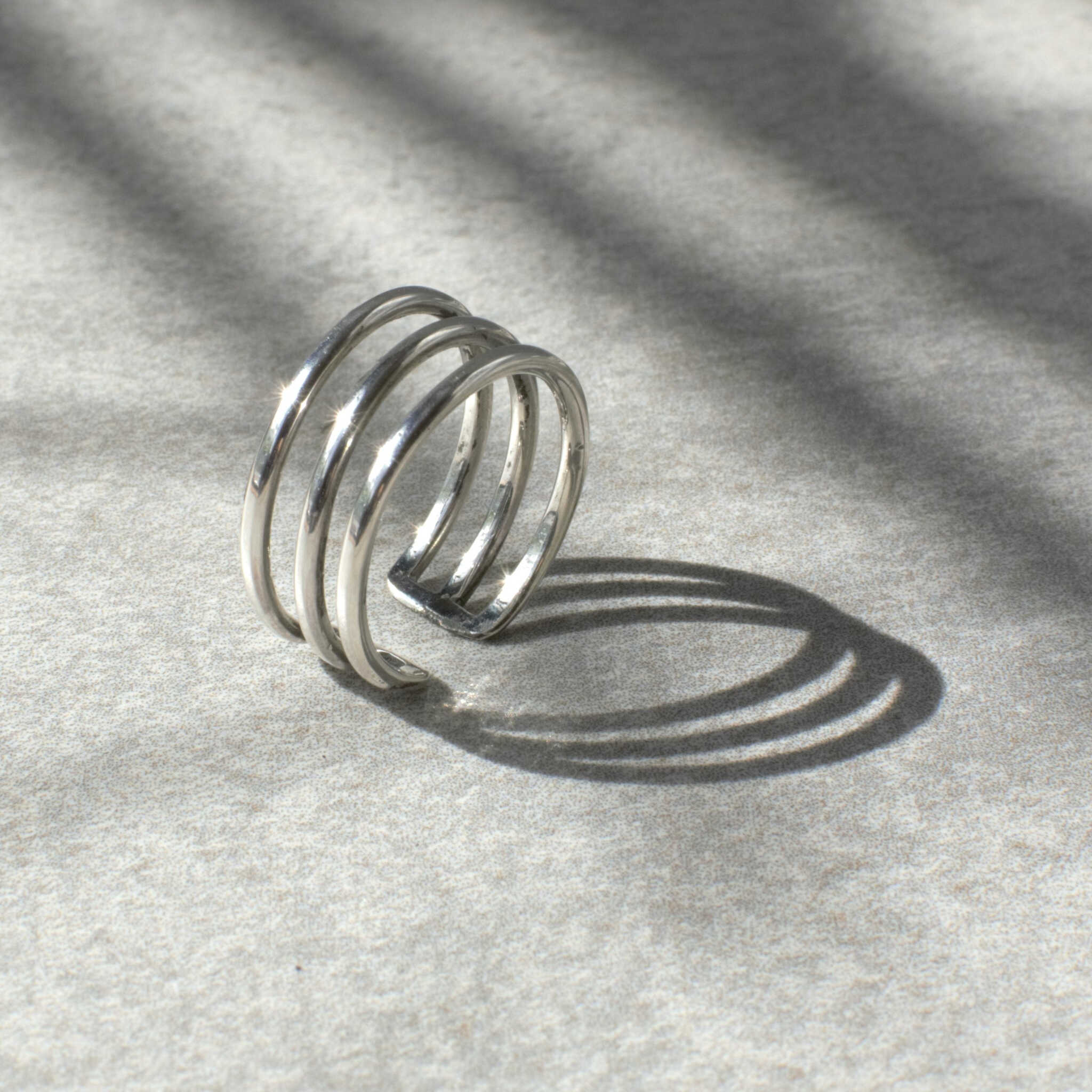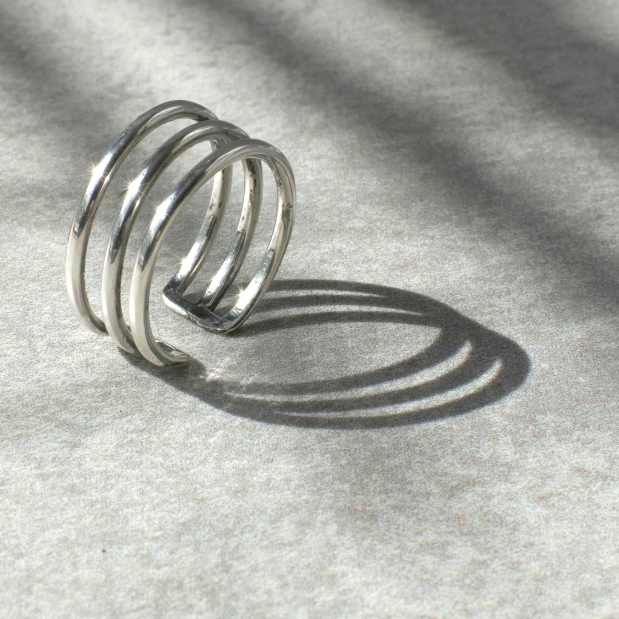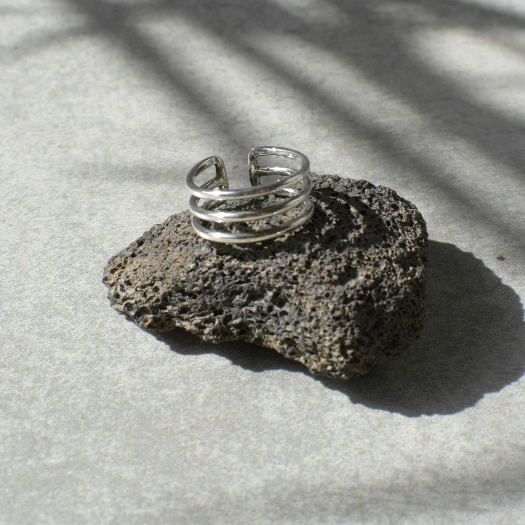 טבעת כסף סטרלינג 925 עשויה משלוש קשתות, שמתחברות זו לזו באופן פתוח. עיצוב זה יוצר מראה אלגנטי וקליל, המתאים לכל אירוע ולכל סגנון.