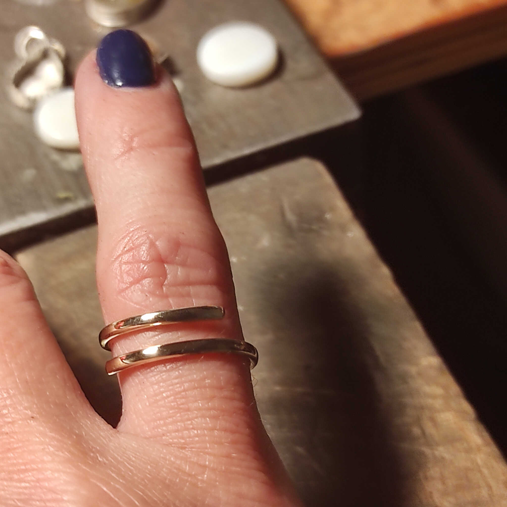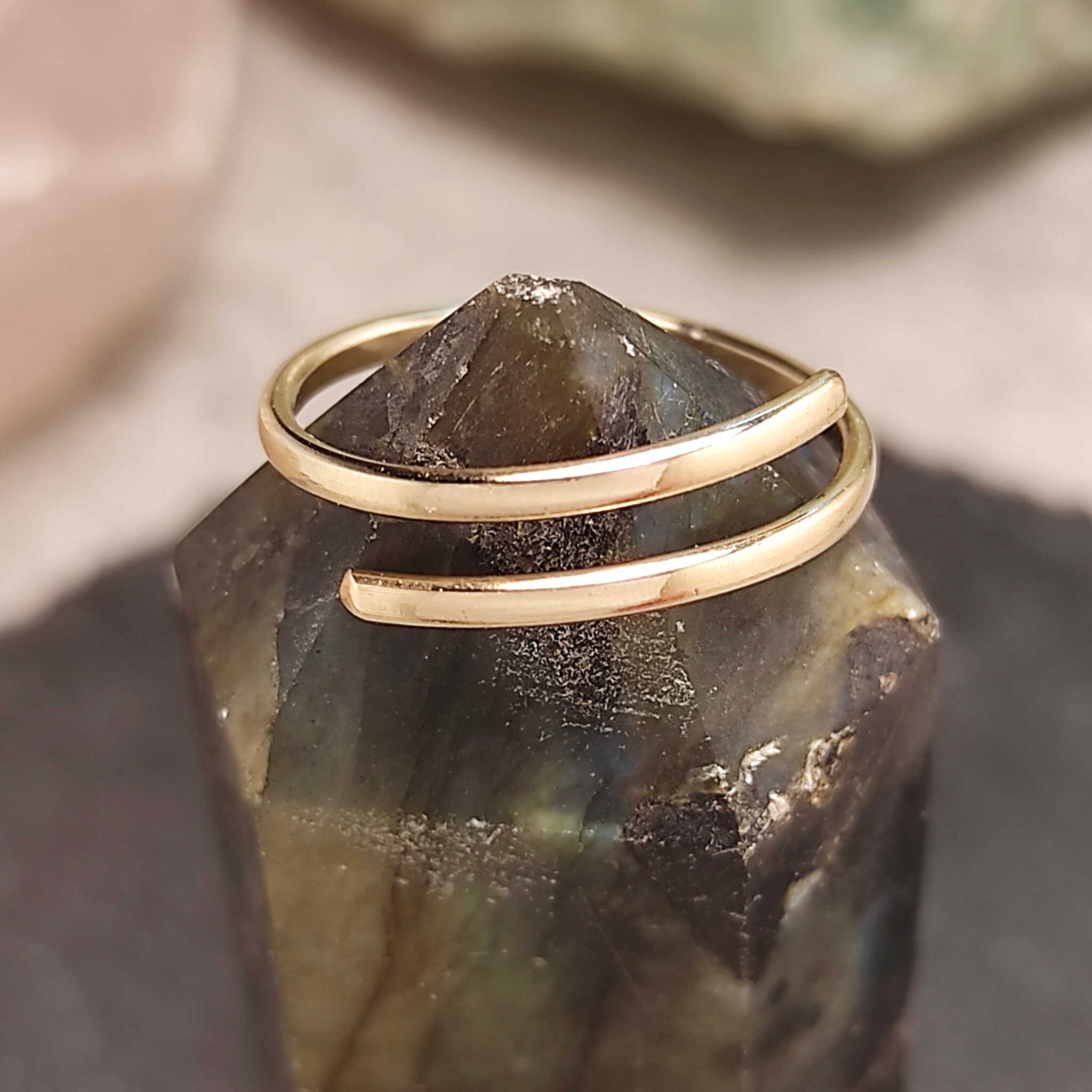 טבעת עשויה גולדפילד 14K, בעיצוב אורגני שנכרך סביב האצבע ברכות ומזמין תחושת זרימה והתפתחות.