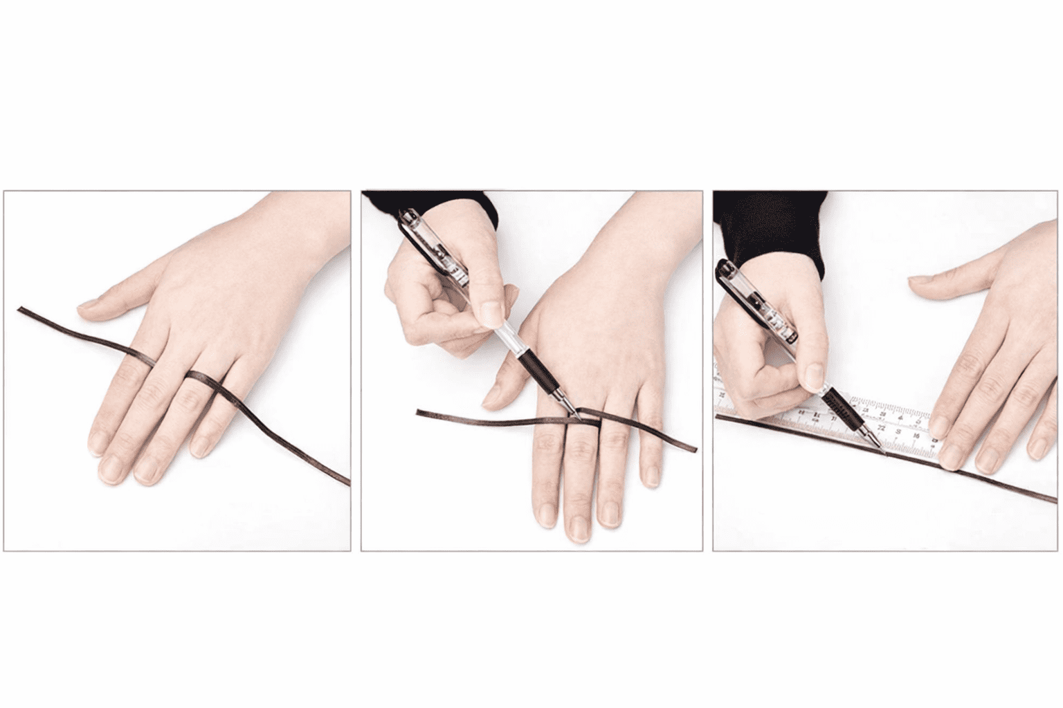 - מניחים את הטבעת על דף נייר או על הסרט המדידה.